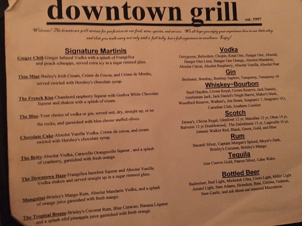 Downtown Grill also boasts an extensive bar, featuring top-shelf drinks and a selection of cigars to enhance your dining experience. With an intimate setting, outdoor seating, and a menu designed for every occasion, this is the perfect spot for couples, families, and groups alike. For a memorable meal, Downtown Grill is a must-visit!